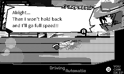 This game challenges you to reach the goal as quickly as possible by cranking to drive your car at high speed while avoiding obstacles approaching from ahead. It delivers the thrill of extreme speed on the small screen of the Playdate. Based on the “Slow Living Philosophy,” it tells the story of workers who must hurry more than anyone else in order to create a society where people can live at a slower pace.